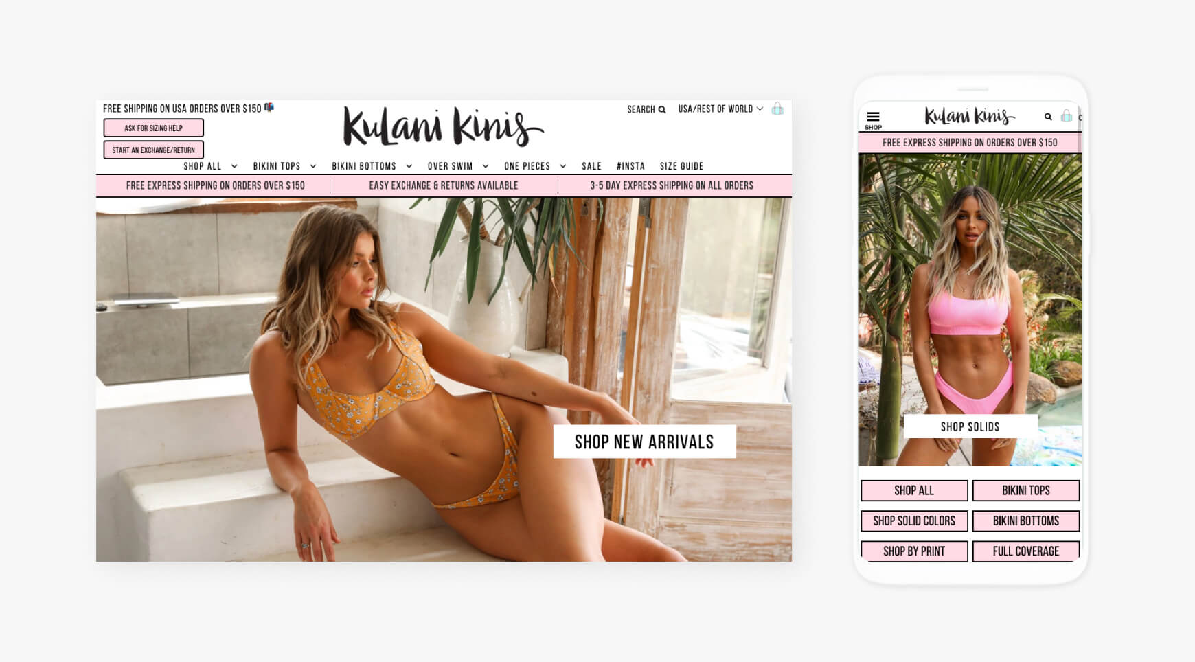 What we love: Kulani Kinis’ core demographic uses mobile over desktop, so we deployed lightweight pages specific to mobile that load in seconds. Because different styles have different fits, we created a style-specific size guide that resulted in a better shopping experience and a decrease in customer support inquiries.